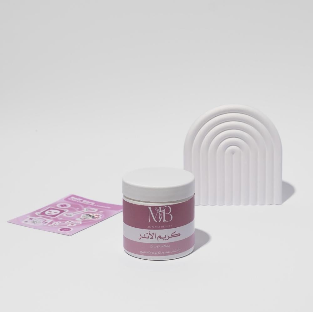 كريم الاندر تحتوي ع اعشاب والزيوت العضويه مُلغم باهم بودرات التفتيح العضويه بالاضافه الى مكونات اخرى طبيعيه يعمل على ازالة التصبغات والاسمرار بالجسم